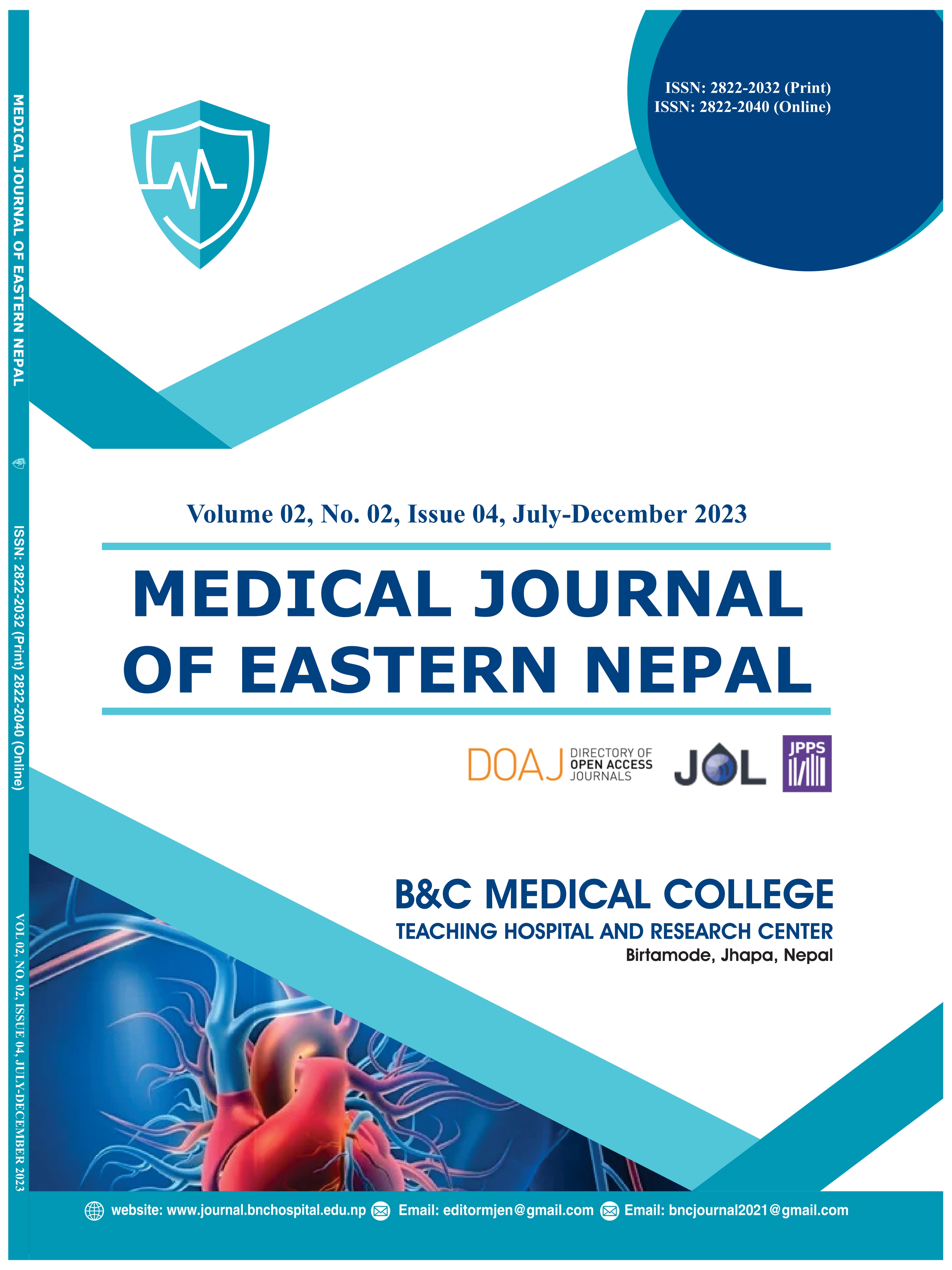 The Medical Journal of Eastern Nepal is published B & C Medical College Teaching Hospital and Research Center, Birtamode, Jhapa, Nepal.