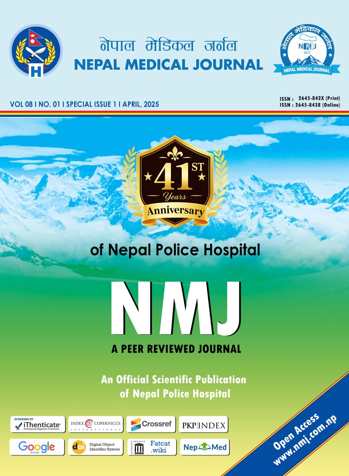 The Nepal Medical Journal (NMJ) is an open access biannual, peer-reviewed biomedical journal published by Nepal Police Hospital. NMJ has begun publication since 2018.