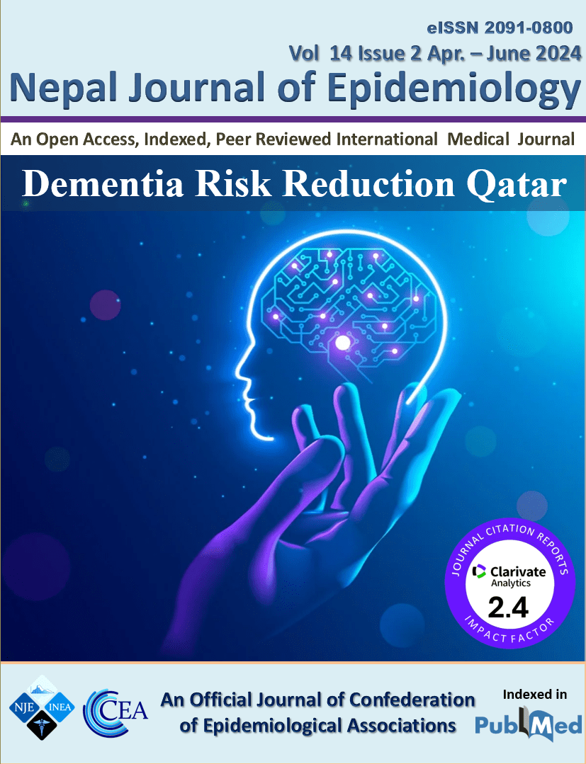 The articles in Nepal Journal of Epidemiology are published under a Creative Commons Attribution 4.0 International license (CC BY 4.0). This license enables reusers to distribute, remix, adapt, and build upon the material in any medium or format, so long as attribution is given to the creator. The license allows for commercial use.