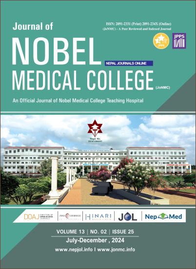 Journal of Nobel Medical College (JoNMC) is a peer-reviewed, open access, Scientific and Medical journal. It is published biannually in English by the Research and Publication Unit of Nobel Medical College Teaching Hospital, Biratnagar, Nepal. JoNMC publishes articles in the field of medicine and allied health sciences covering all perspectives of health and diseases including clinical and experimental studies along with medical education as well. The journal was first published in 2012 and has been regularly published till date. Contributions are accepted for publication on the condition that their substance has not been published or submitted for publication elsewhere.
